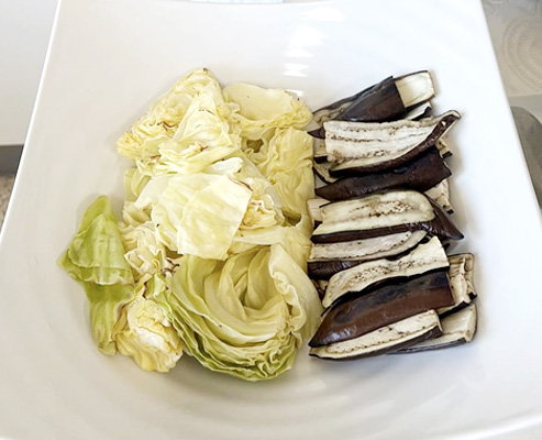 | 근대된장무침 | 양배추찜 | 미나리무생채 | 쑥갓두부무침 | 간장깻잎지 | 무채나물 | 건파래무침 | |